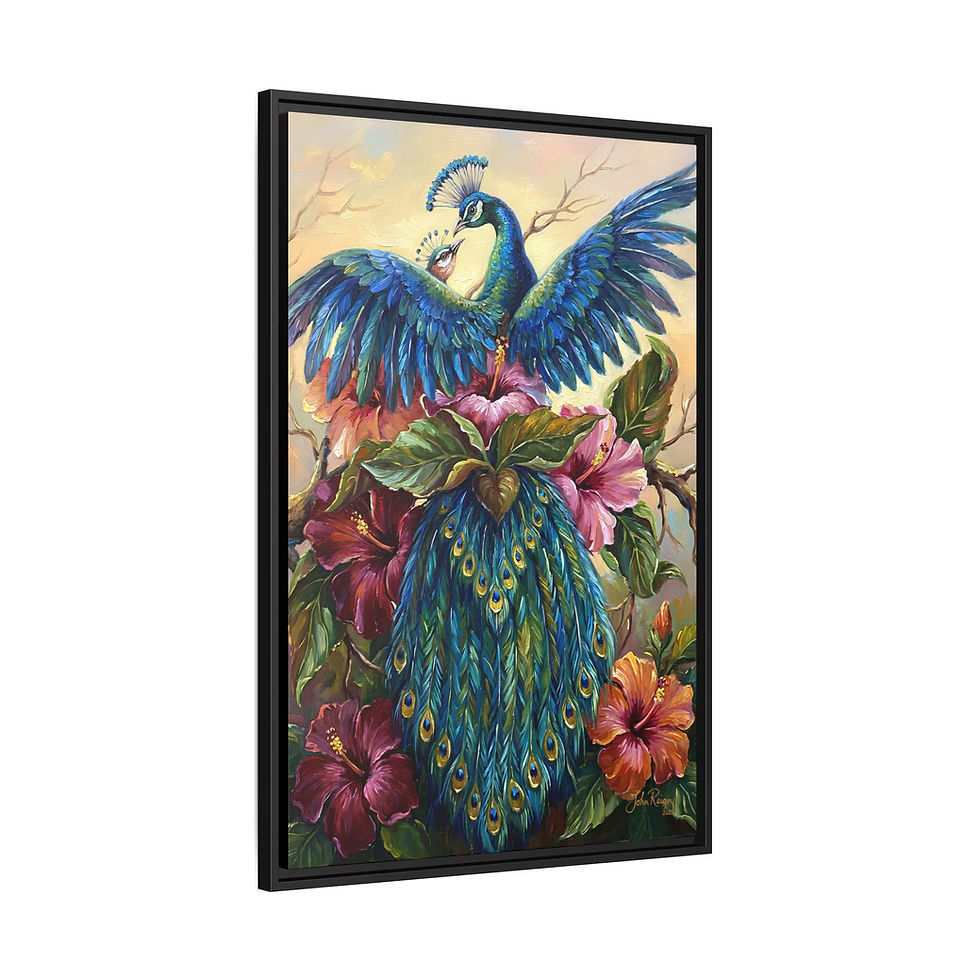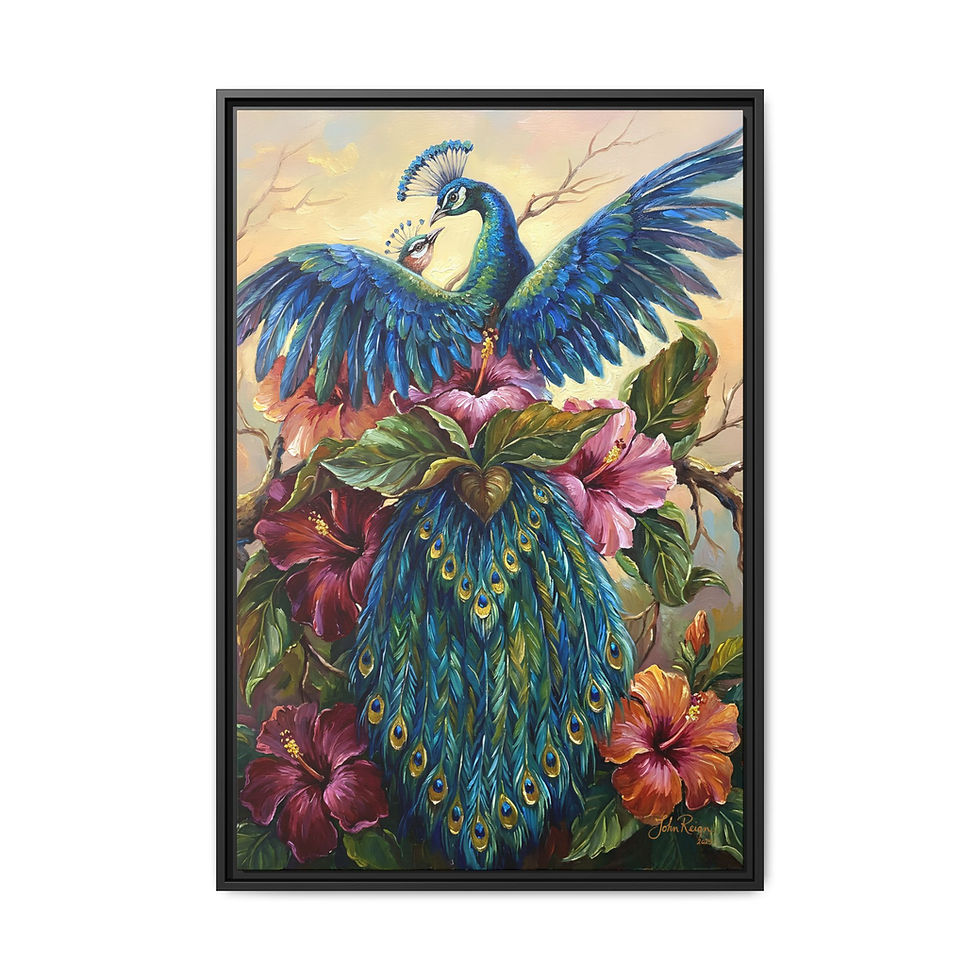 Framed Peacock Canvas Wall Art — by John Reign