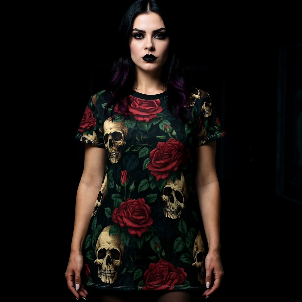 VAMPIRE PENANCE Gothic Vampire Skull T-Shirt Dress